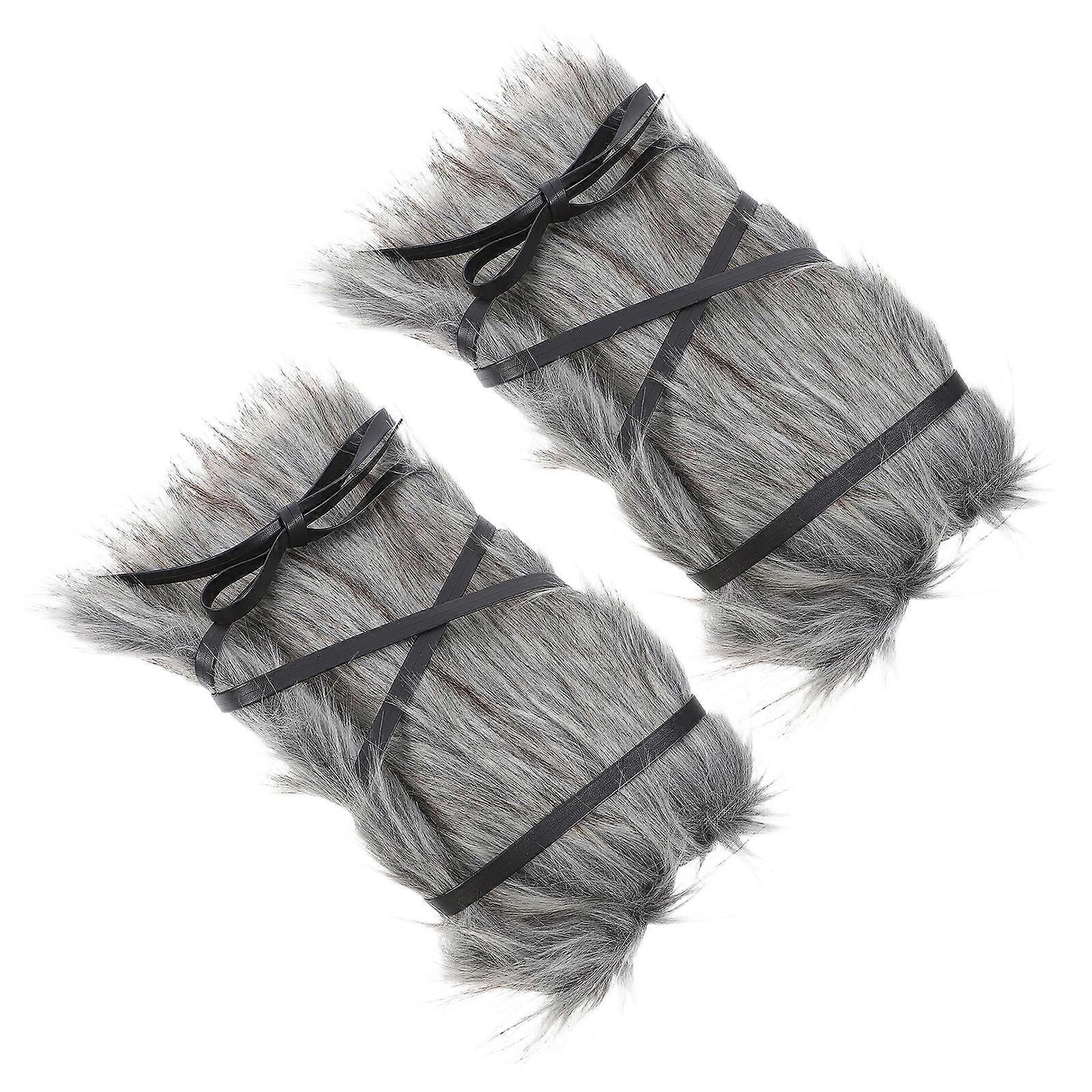 Furry Plush Leg Guards for Men and Women Boot Covers Grey Cloth Material for Stage Performance 2Pcs