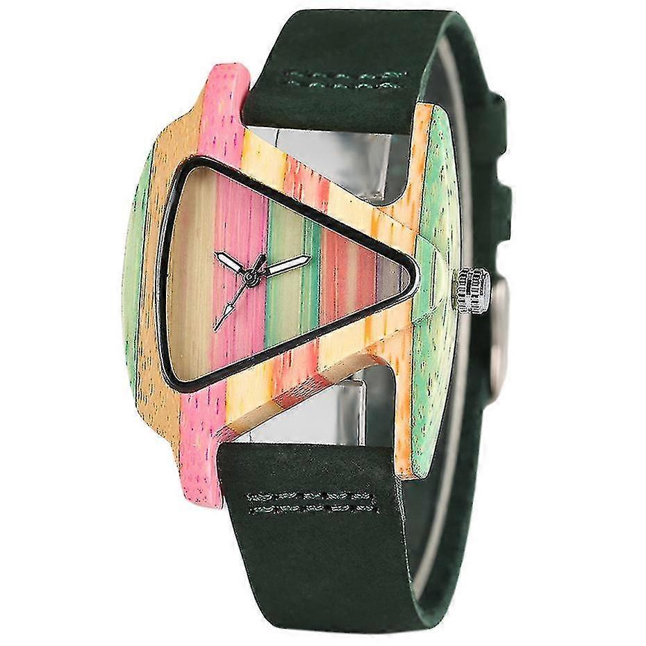 Unique Triangle Women's Wood Watch Creative Colorful Lady Green/ Red Genuine Leather Wristwatch Elegant Womens Watches Top Gifts Tw