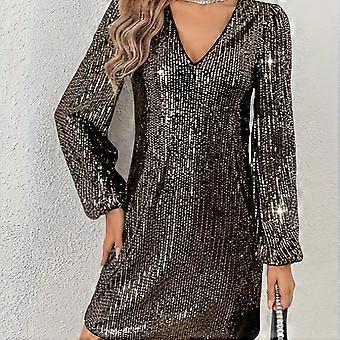 JUNGE Sequined Lantern Long Sleeve Elegant Dress, V-neck Bodycon Dress, Women's Clothing SZJG240306