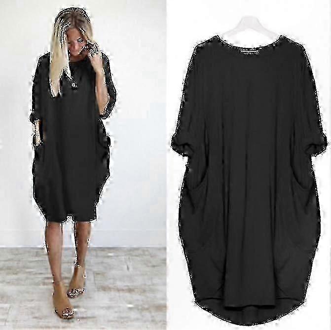 Women's Long Sleeve Tunic Dress with Relaxed Fit and Side Pockets Detail
