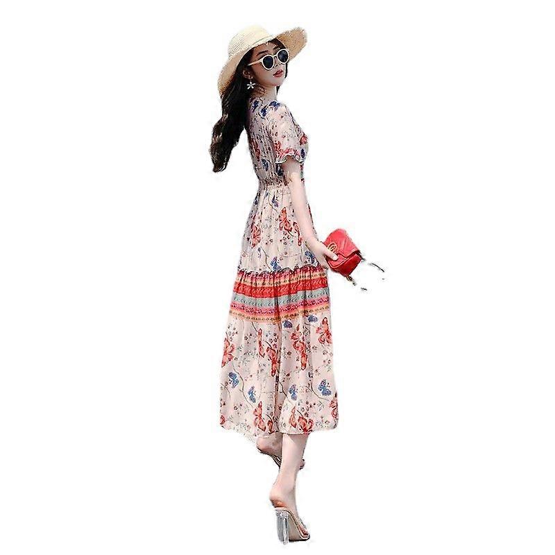 Women's Remi Dress, Egret, Tan, Floral Midi Pink