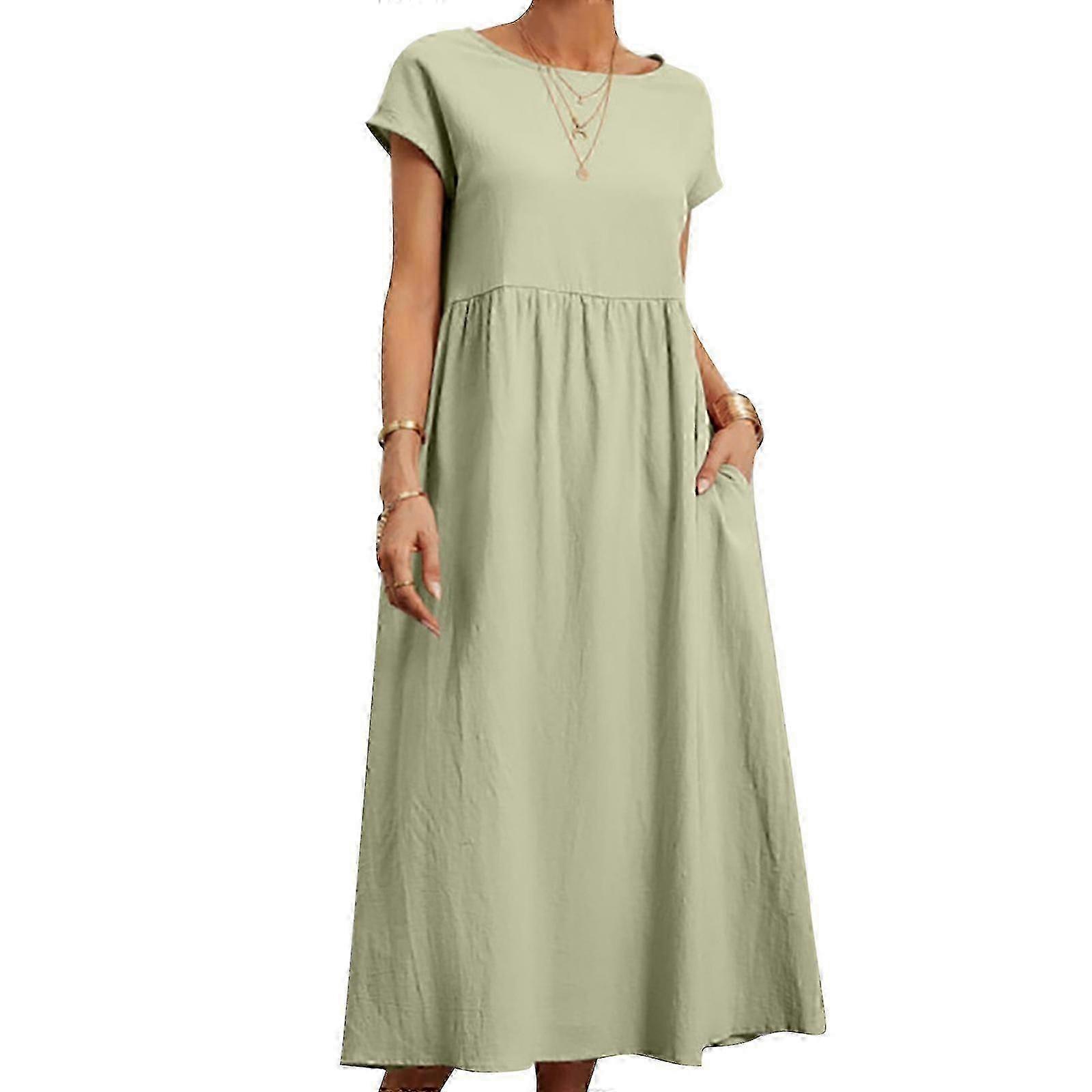 Plus-Size Women's Cotton Linen Summer Dress Casual Loose Fit Solid Color Kaftan Long Dress with Pockets Brown XXXXXL