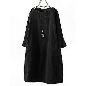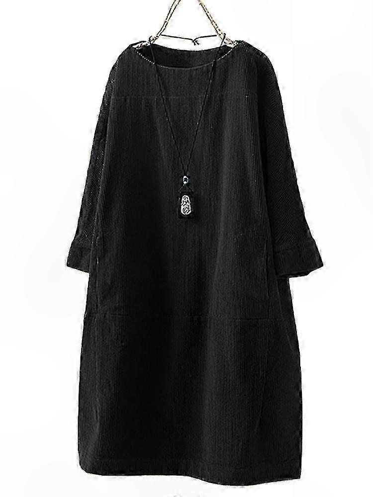 Women's Retro Corduroy Mini Dress with Long Sleeves and Side Split Detail