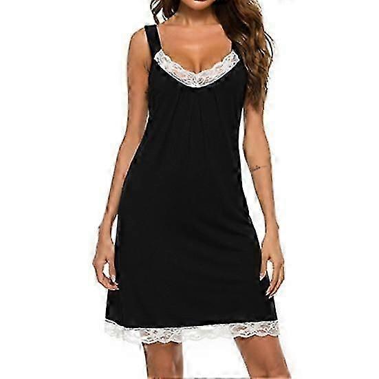 Women Nightdress V Neck Lace Sleeveless Nightgown For