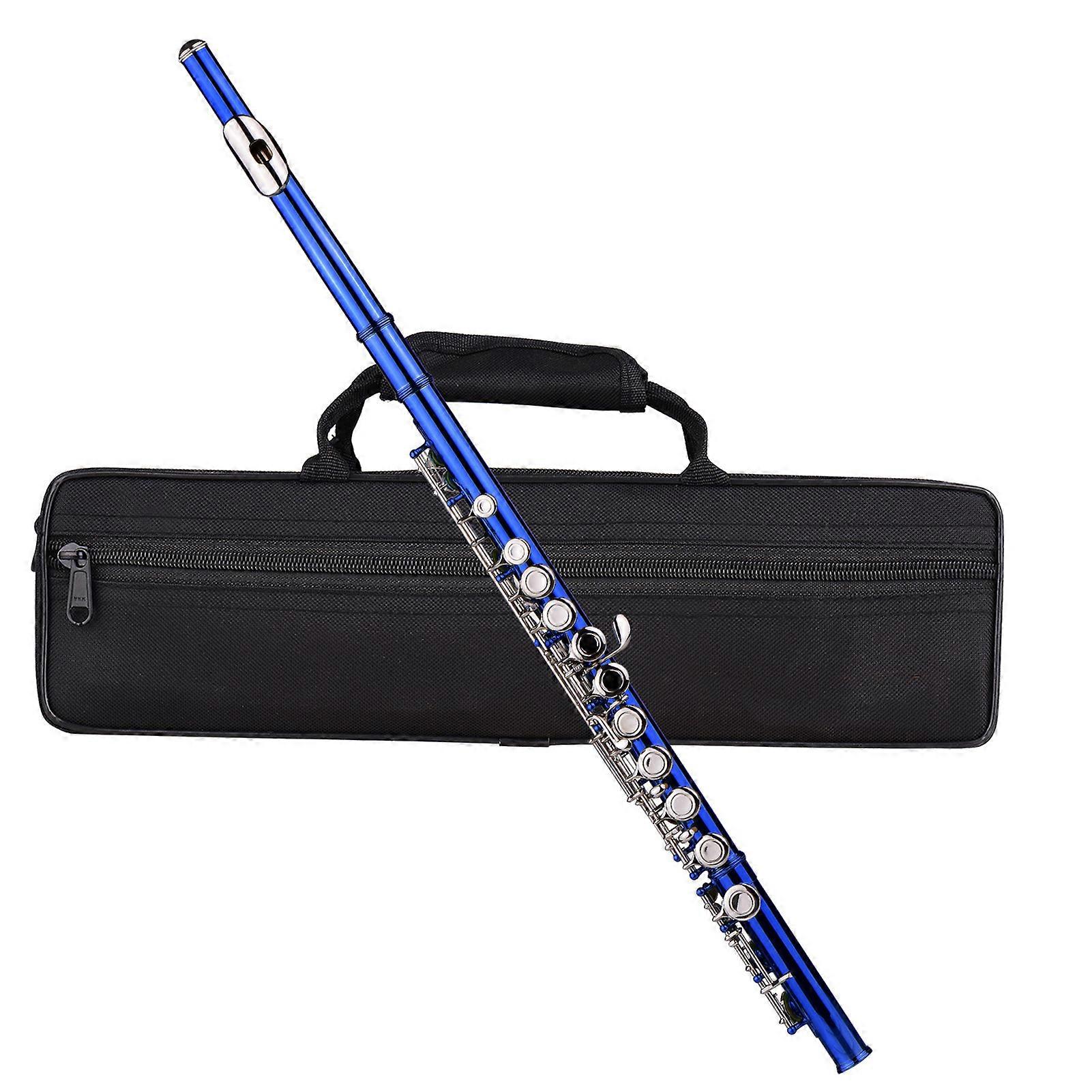 Closed Hole C Flute 16 Keys Cupronickel Nickel-plated Wind Instrument with Carry Case Flute Stand Gloves Cleaning Cloth Mini Screwdriver Cleaning Rod