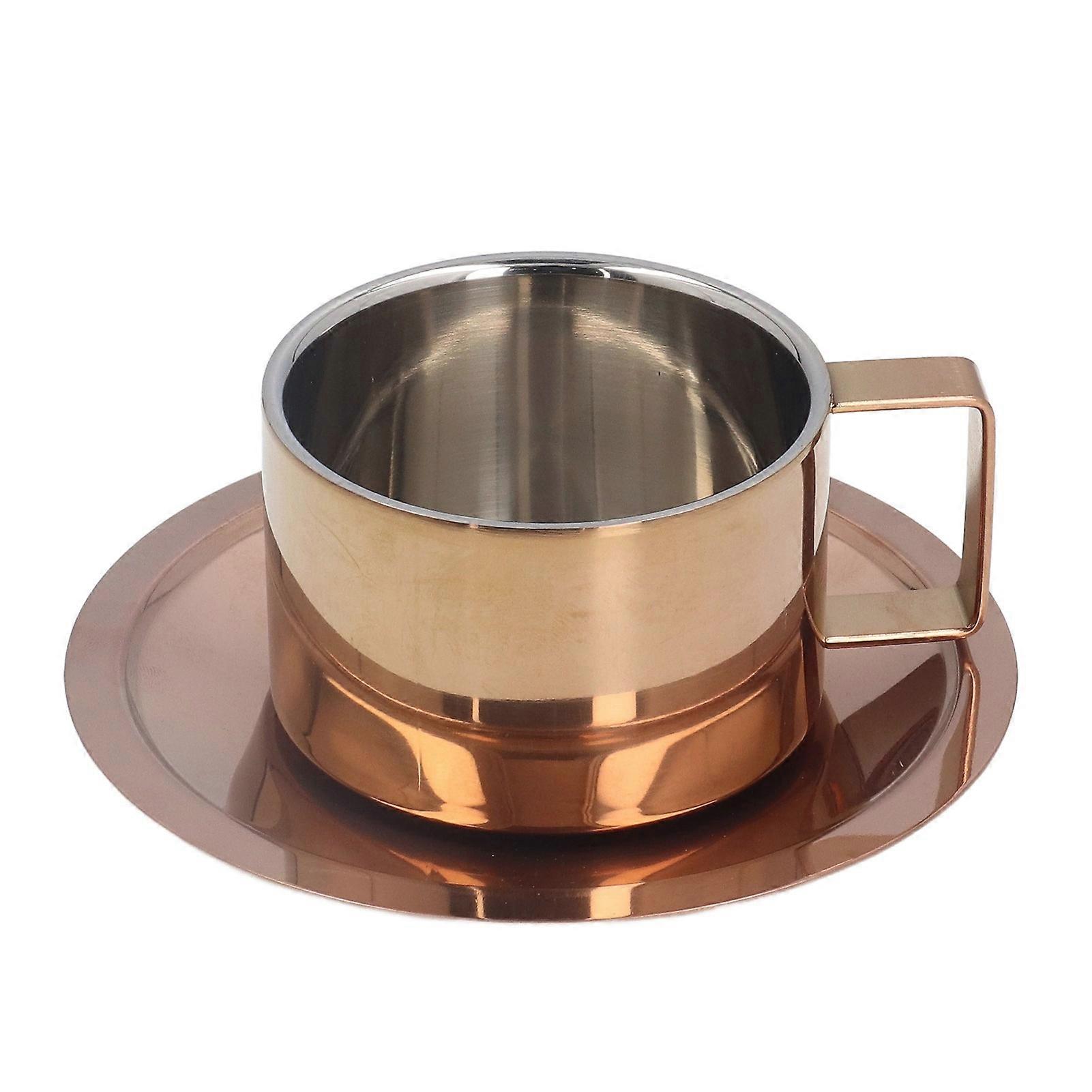 Coffee Cup Simple Ingenious 304 Stainless Steel Coffee Cup Set with Coffee Plate for Home Outdoor Rose Gold
