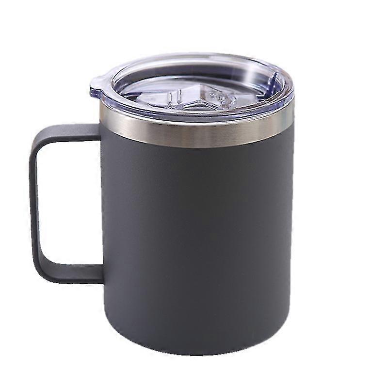 12oz Coffee Cup with Handle Slide, Stainless Steel Hot and Cold Tea Cup, Double Vacuum Insulation (Grey)