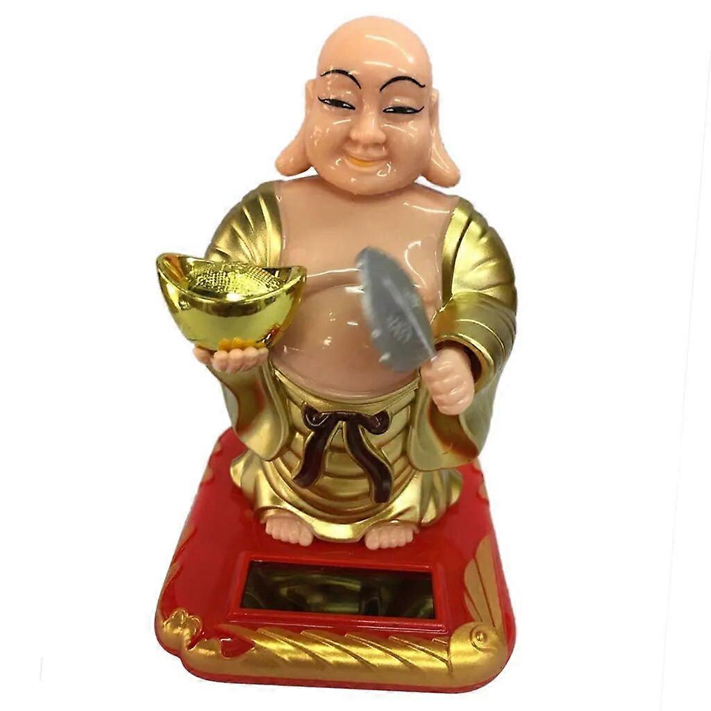 Feng Shui Decoration Solar Powered Waving Fan Lucky Wealth Happy Laughing Buddha -236x276x394inch