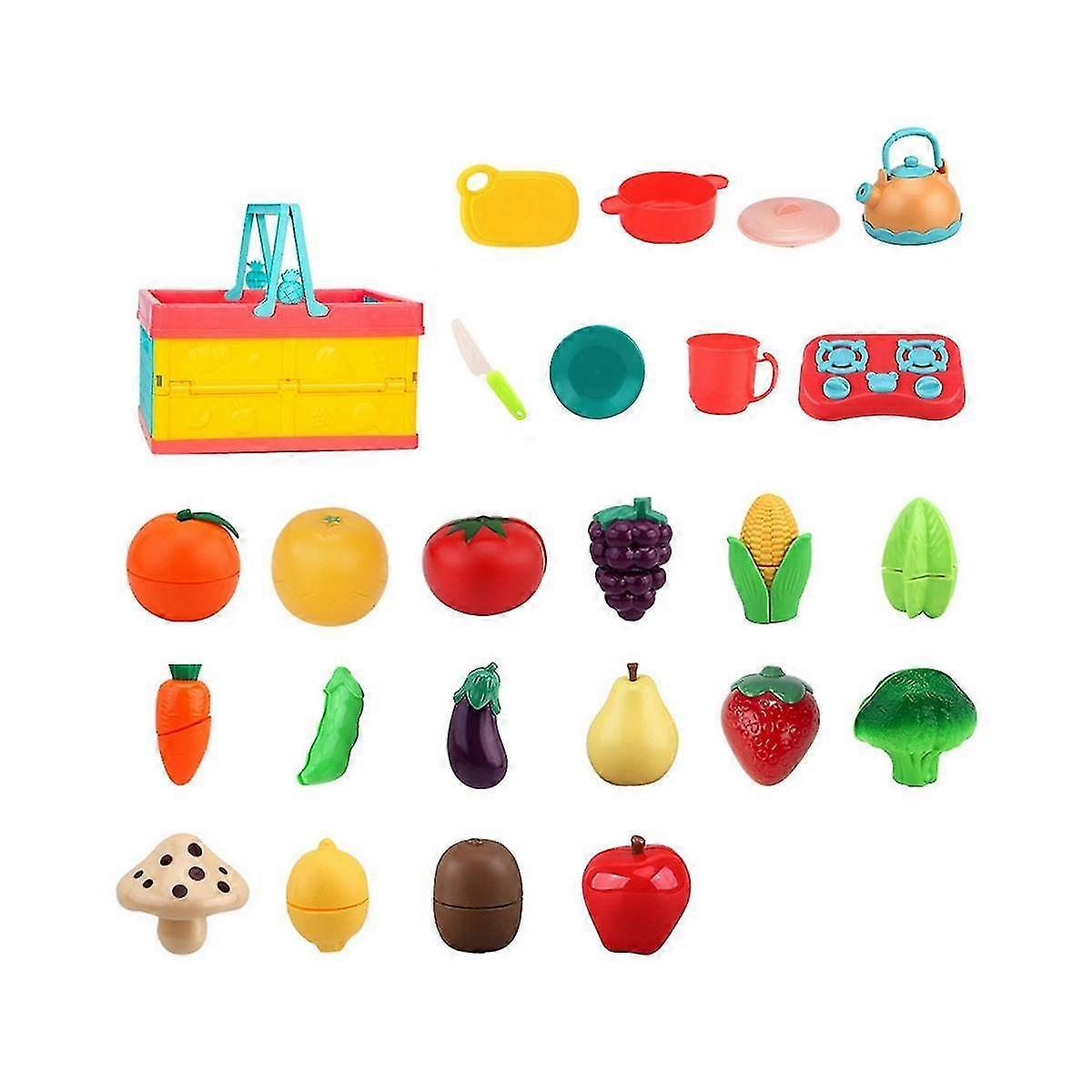 Children's Fruits and Vegetables Cut and Play Toys Play House Simulation Kitchen Toys 25-Piece Set Suitable for Children