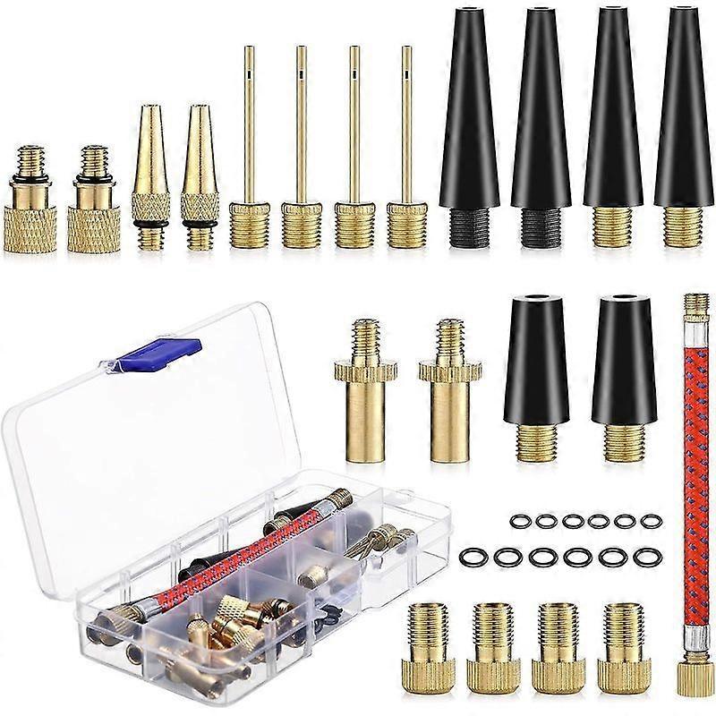 Bike Pump Nozzle, 33 Pieces Balloon Inflator Nozzle, Dv Sv Av Bike Pump Adapter With Storage Box, Valve Adapter With Inflation Hose