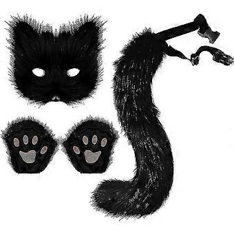 فو الفراء الثعلب الذيل القط الذئب تأثيري زي مجموعة قناع أفخم رقيق باو قفازات عيد الميلاد هالوين - JA
