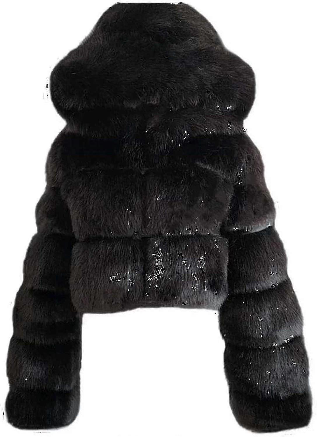 Faux Fur Coat Women With Hood Cropped Bubble Coats Fleece Short Warm Jackets Plus Size Winter Coats For Women High Quality