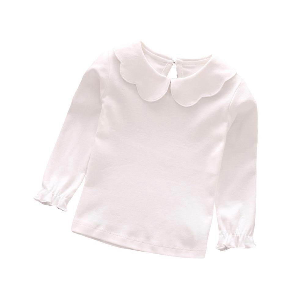 Fianao Baby Girl Kids Cotton Peter Pan Collar Long Sleeve Solid Color Top Cute T-shirt