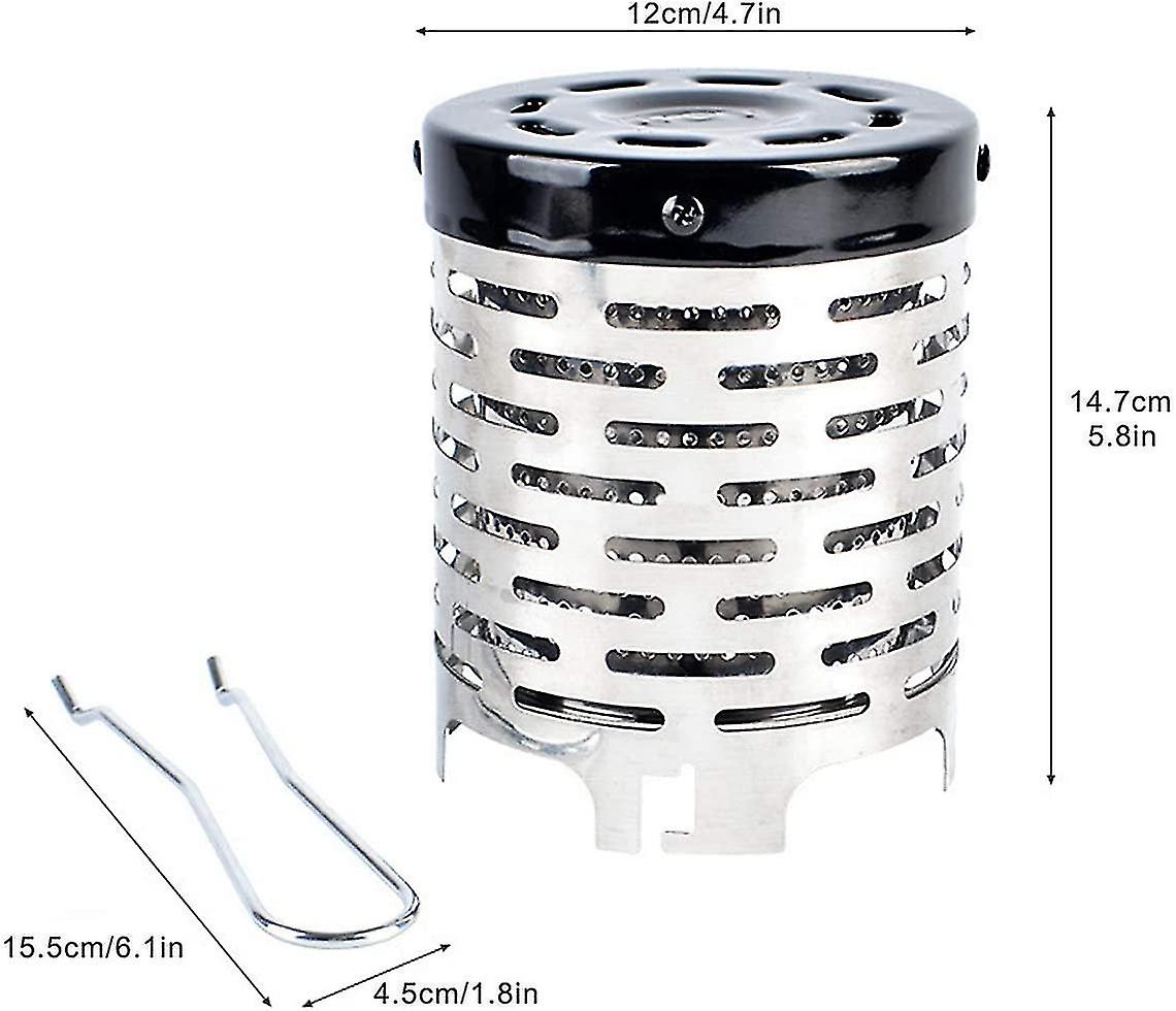 The mini outdoor heater is made of premium stainless steel, rustproof, solid, heat resistant and durable for long term use, compact for convenient use and carry. You can put it in your camping backpack for outdoor camping, a mini camp stove designed as a fireplace, which can transfer heat 360 degrees