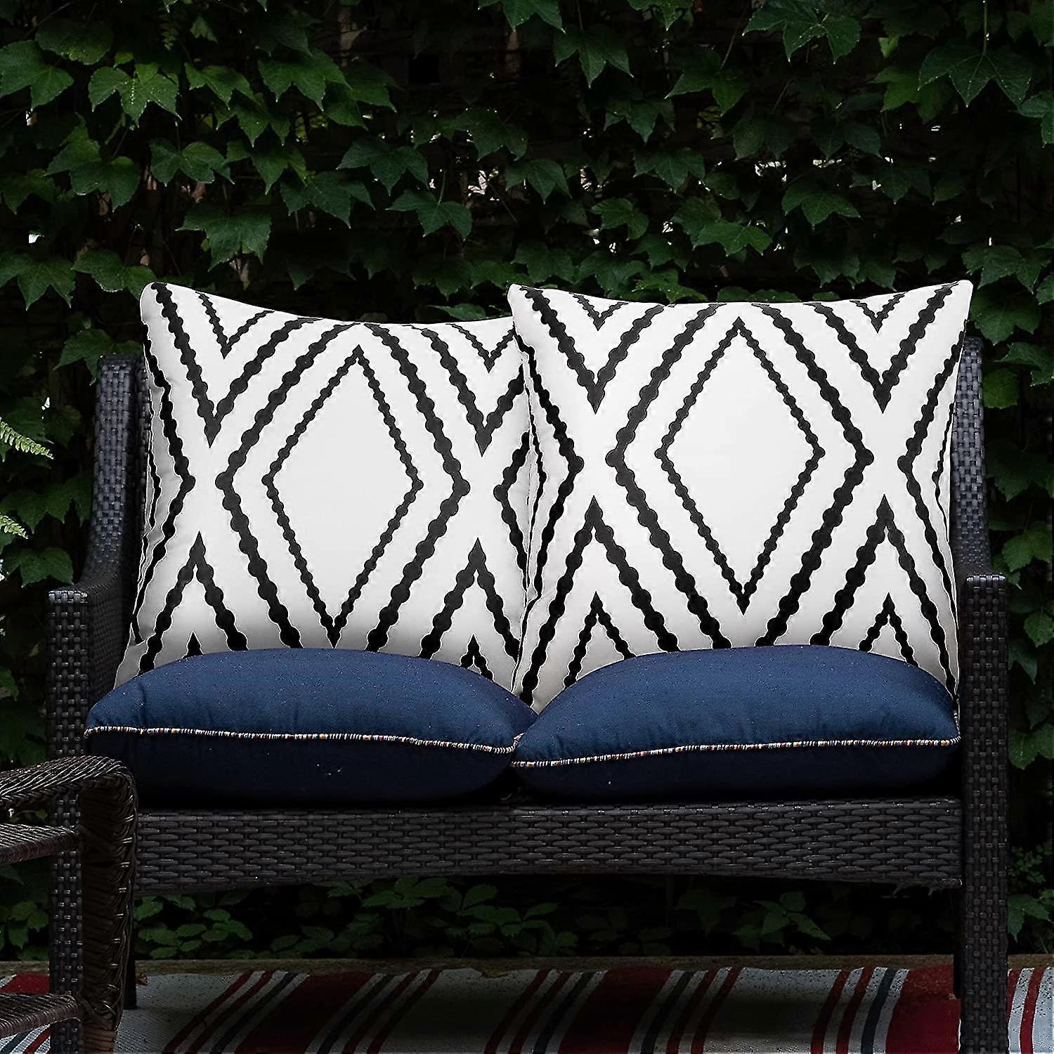 Outdoor Waterproof Boho Throw Pillow Covers Geometric Pillow Cases For Patio Garden Set Of 2, 18 X 18 Inches