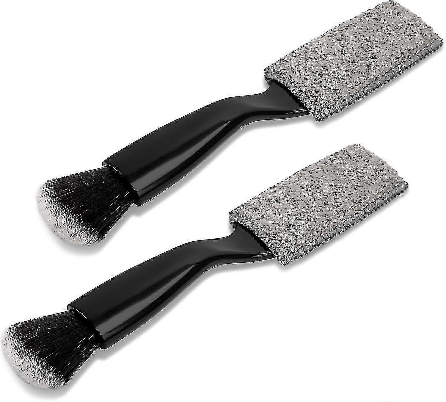 in 1 Car Cleaning Brushes Dual Head Interior Detailing Brushes Dust Brush for Car Air Vent, Dashboard, Seat 2 Pieces (Black)