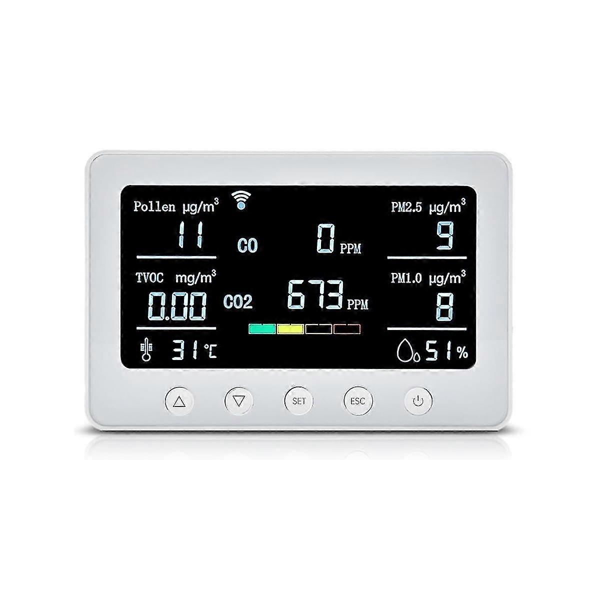 EU Plug, Wi-Fi Air Quality Monitor Detects Pollen/TVOC/CO/CO2/PM2.5/1.0/Temp/RH, IoT Controller, RS