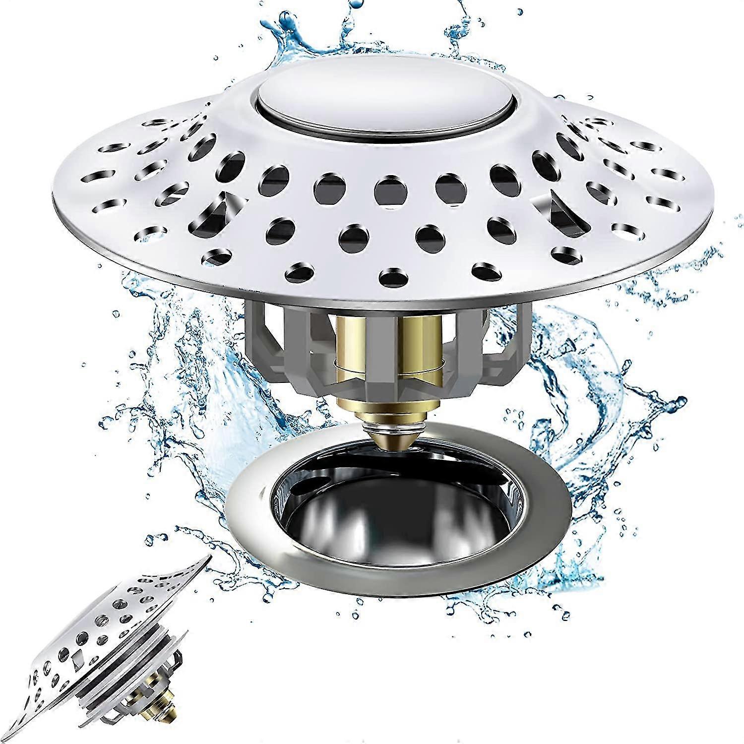 Bathtub Drain Plug, 2 In 1 Bathtub Stopper & Drain Hair Catcher, With Stainless Steel Filtered Pop-up Drain Filter For Us Standard Bathtubs Drain Hole