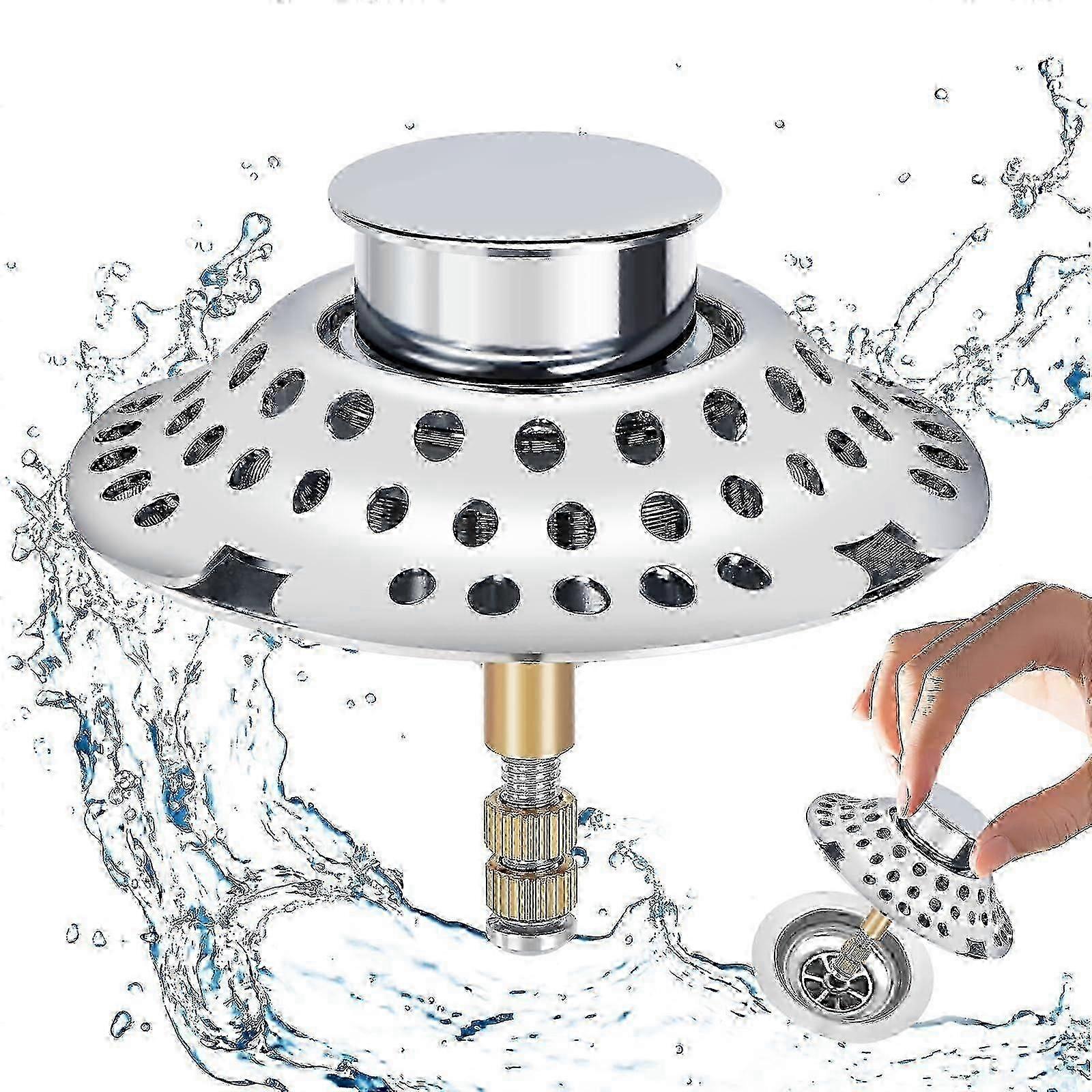 2-in-1 Bath Plug with Hair Strainer, with Filtration Design, Drain Strainer Bath Hair Catcher, Height-Adjustable Made of Brass