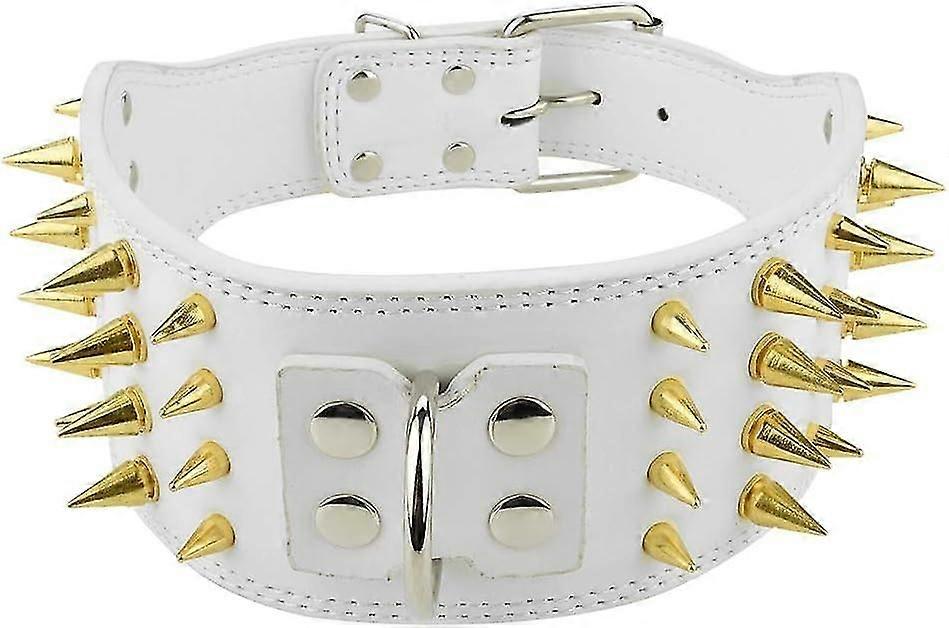 Adjustable Spiked Dog Collar Pu Leather 4 Rows Studded Pet Collars Ring For Small Medium Large Dog Puppy (66 * 7.5cm-white)
