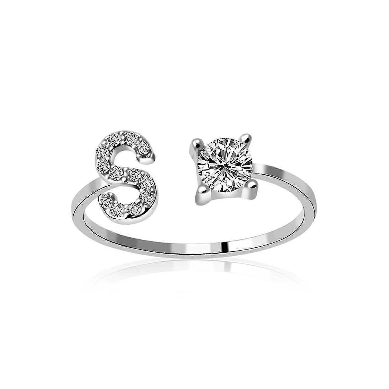 Adjustable Alphabet S Letter Women Finger Ring Jewelry