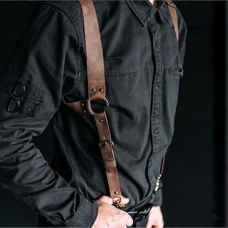 Adjustable Men Pu Leather Back Belt Body Chest Harness Suspenders Belt(1Pcs,Brown)
