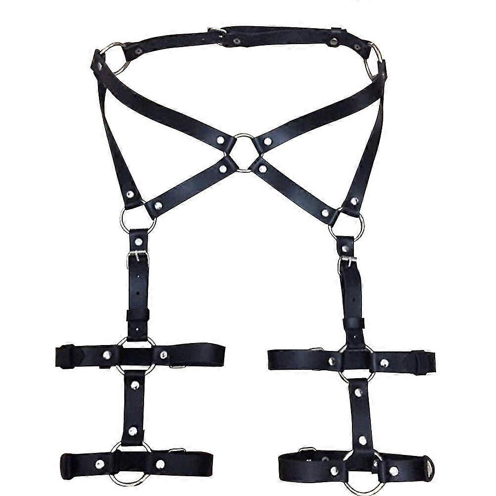 Adjustable Pu Leather Harness Punk Style 2 Rows Leg Garter Waist Belt Suspender/YY