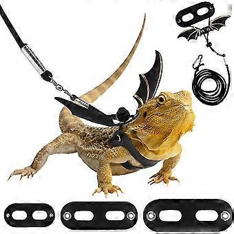 Adjustable Bearded Dragon Harness and Leash, 3 Size Leather Reptile Leash Outdoor Harness Leash with Bat Wings for Lizard Reptiles Amphibians Small Pe