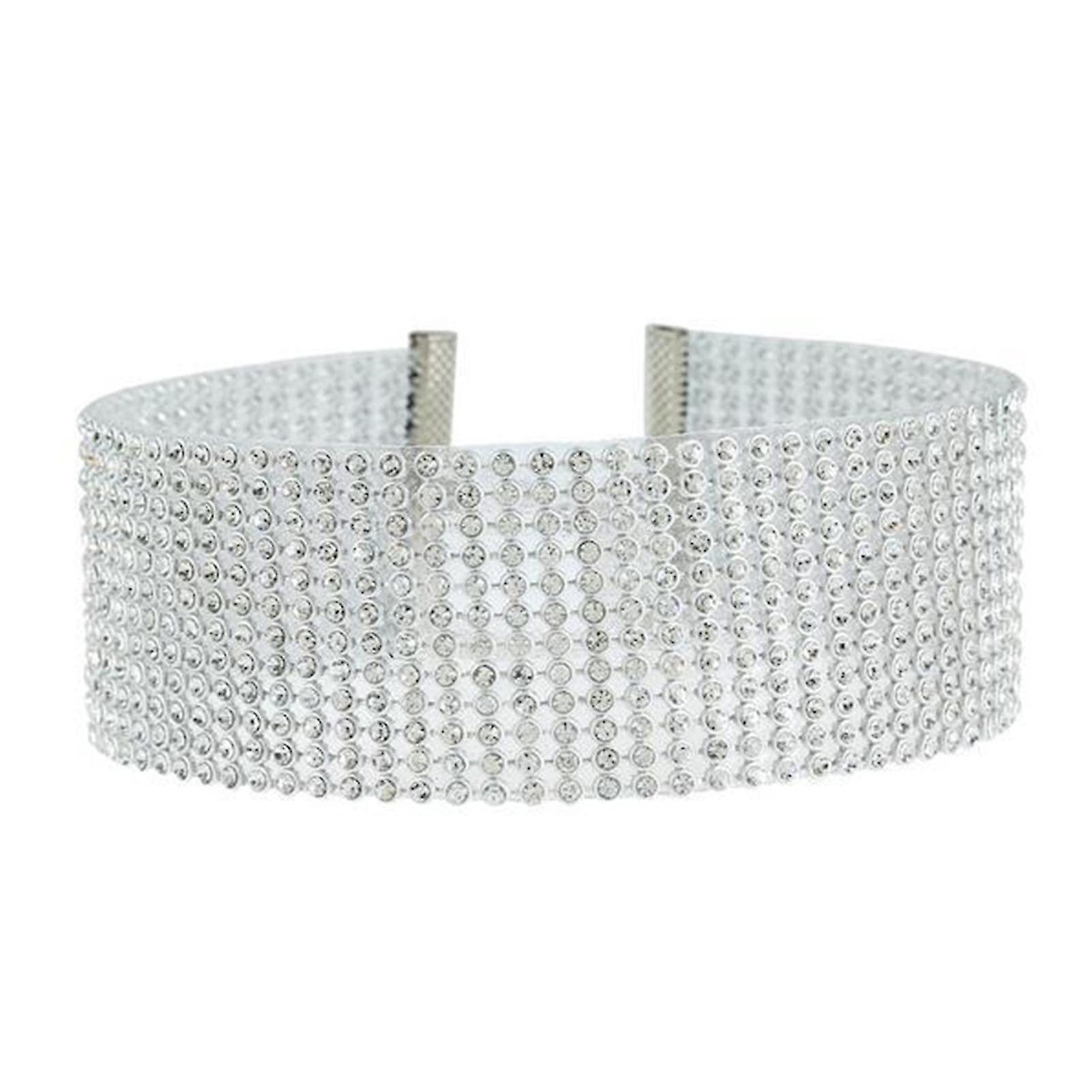 Adjustable Wide Alloy Choker Collar Inlay Rhinestone Hip Hop Choker Necklace Fashion Jewelry