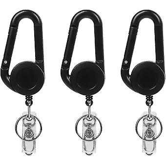 Retractable Keyring Id Card Holder Extendable Keychain Belt Clip Badge Reels Black 3pcs
