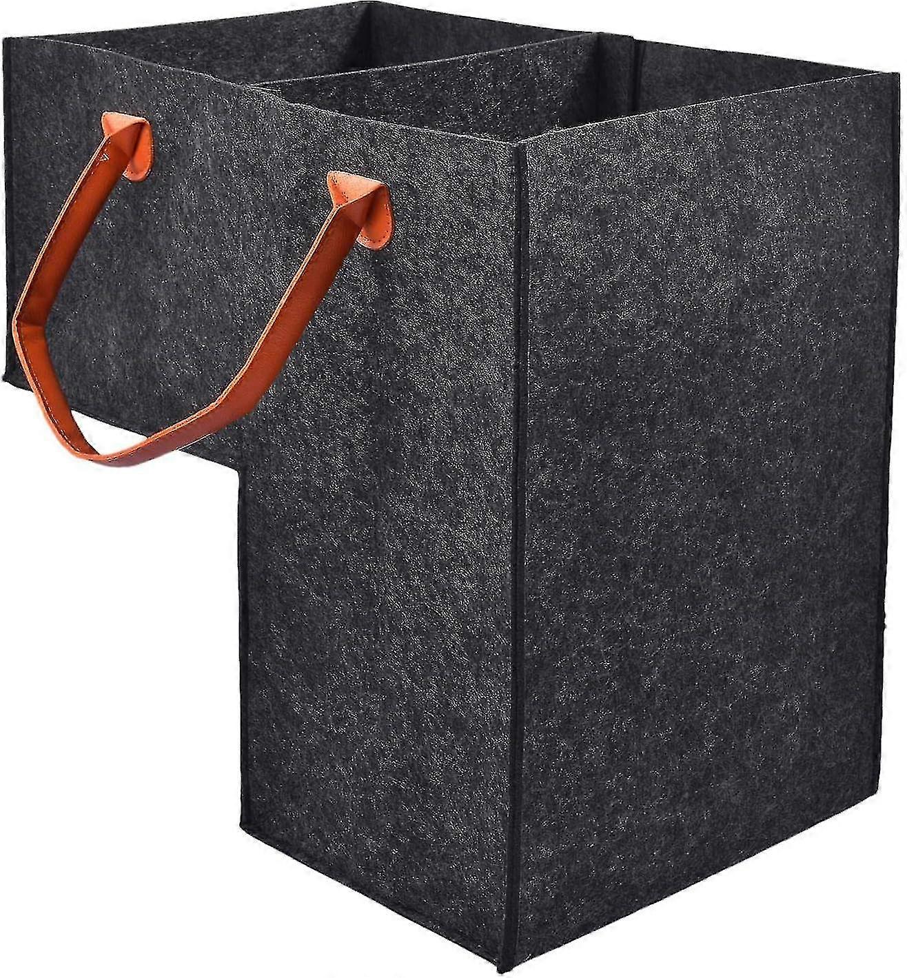 Foldable L-shape Stair Basket Organiser, Folding Fabric Staircase Storage Organizer With Faux Leather Handles, Large Stair Tidy Basket Bin For Laundry