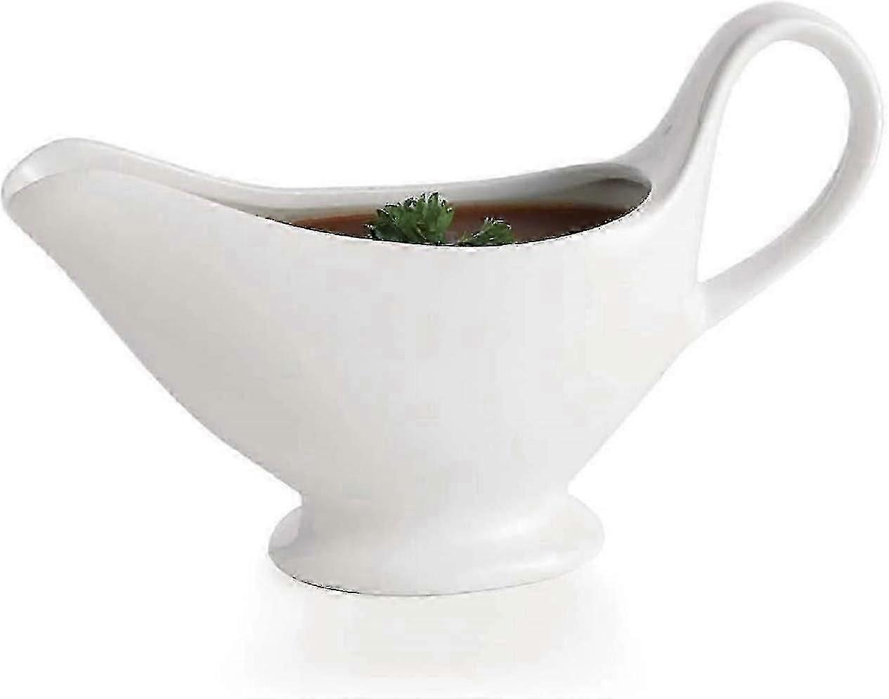 Gravy Boat, White Ceramic Sauce Boat with Handle & Dripless Pour Spout, 3 Oz for Dressings Broth