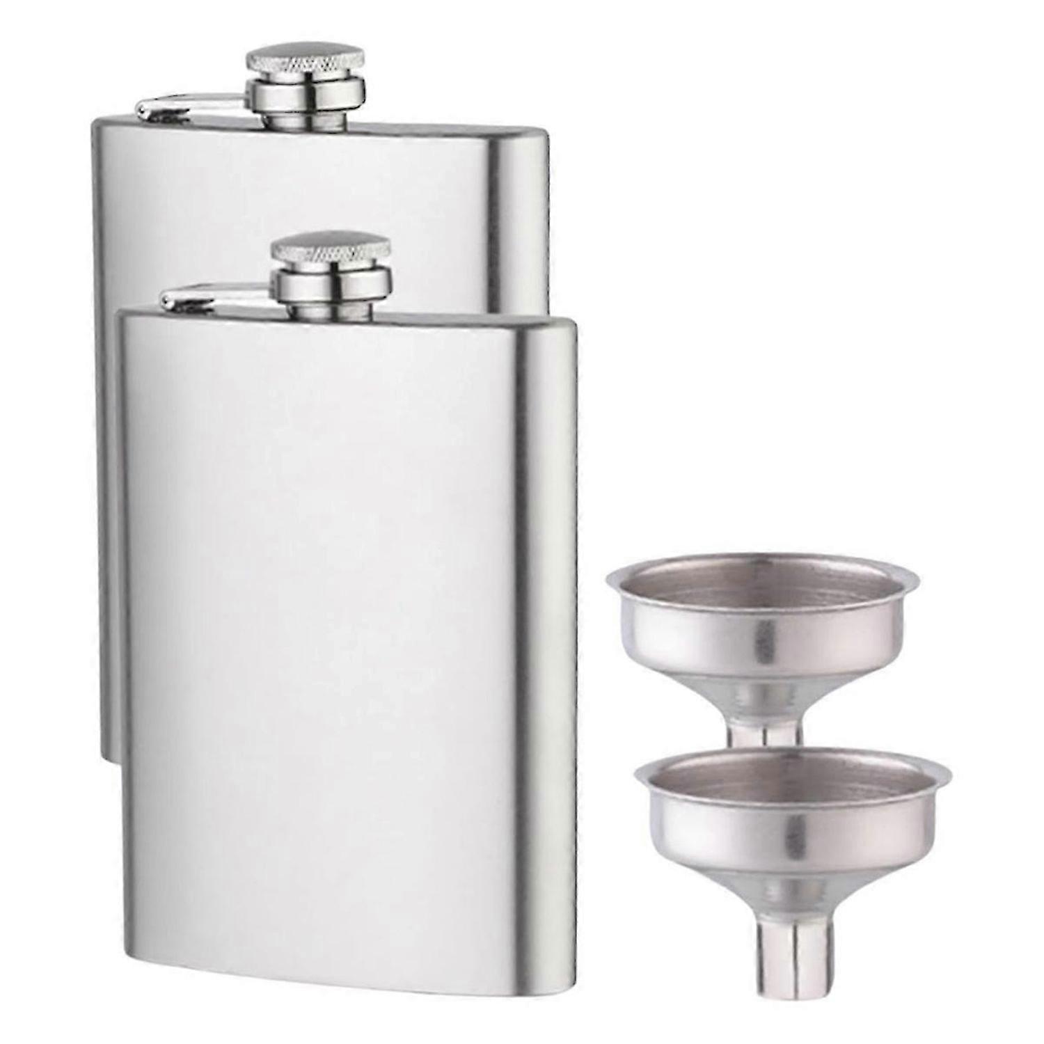 Hip Flask X2 Stainless Steel 304 8 Oz with Funnel - Leak-Proof, Stylish and Portable Bottle Set for