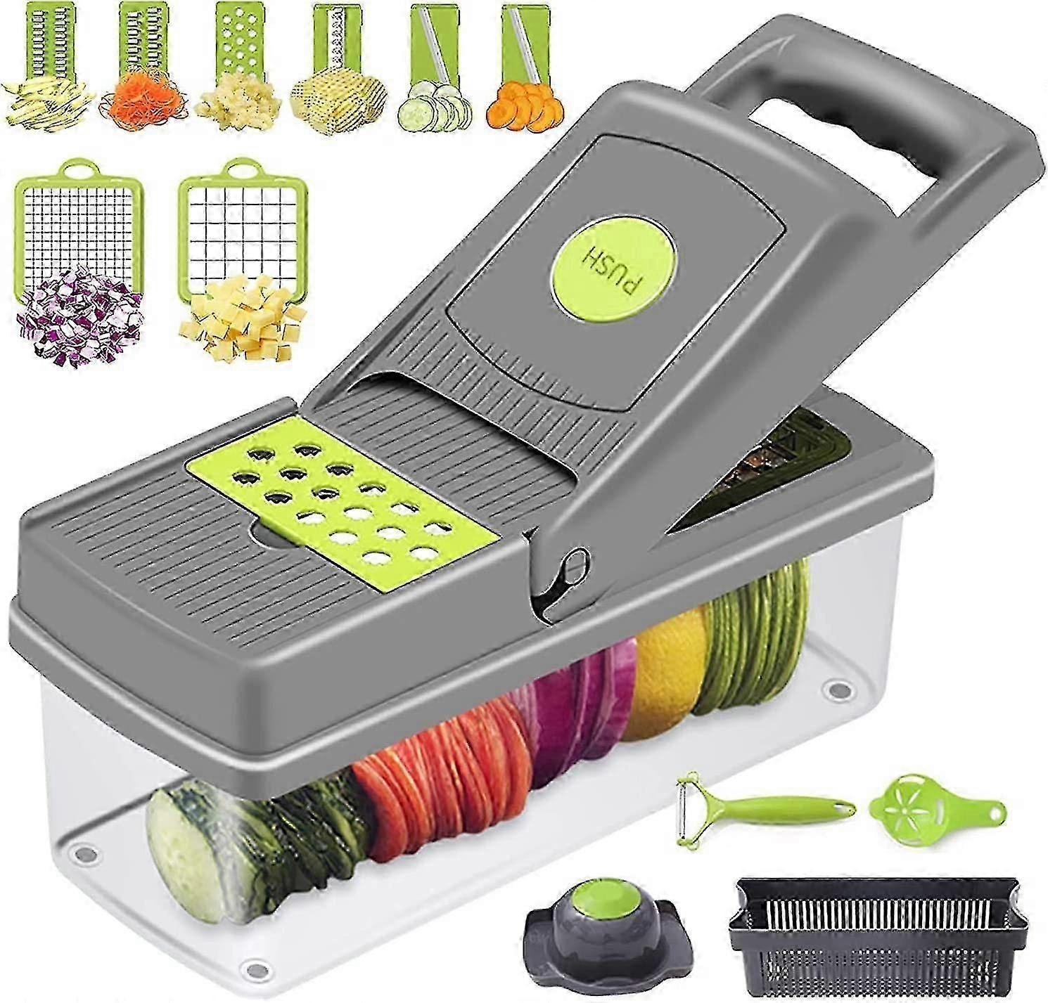 Multifunctional Vegetable Cutter with 8 Stainless Steel Blades,13 in 1,Fruit Cutter with Drain Basket