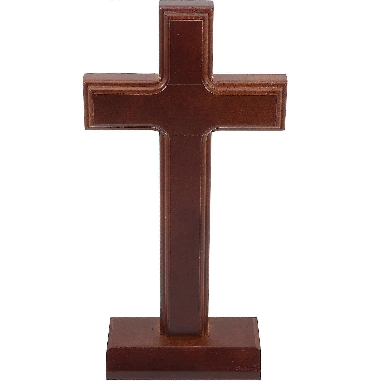 Wooden Base Cross Ornament Decorative Standing Church Cross Desk Decor