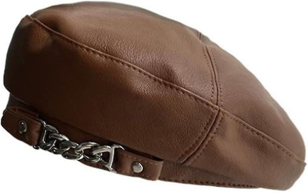 French Beret Vintage Beret Hats for Women Solid Artist Hat Pu Leather Metal Chain Flat Top Hat Octagonal Hat Warm Beanie