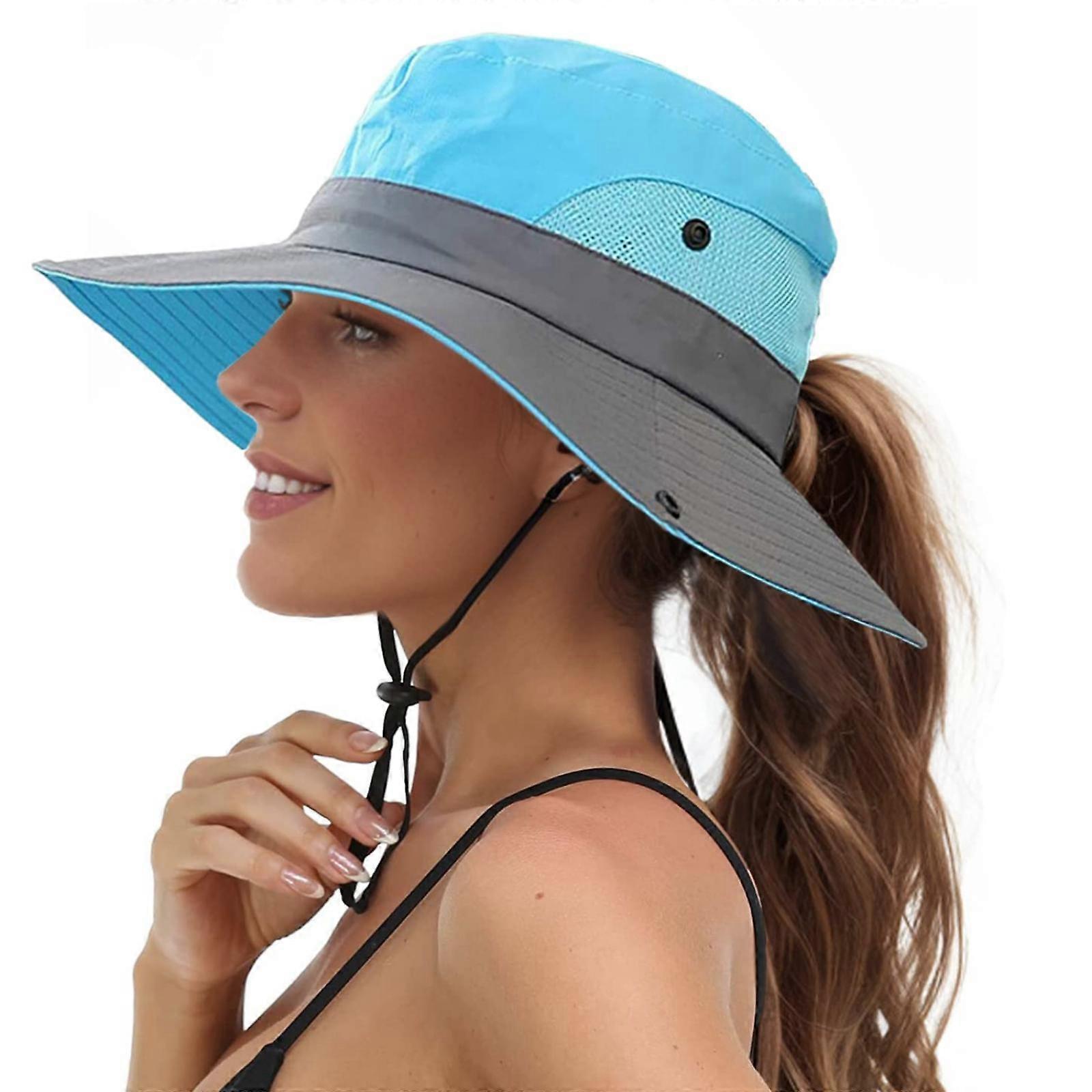 Women's sun hats, beach hats, ponytail hats, women's UV protection wide brim sun hats