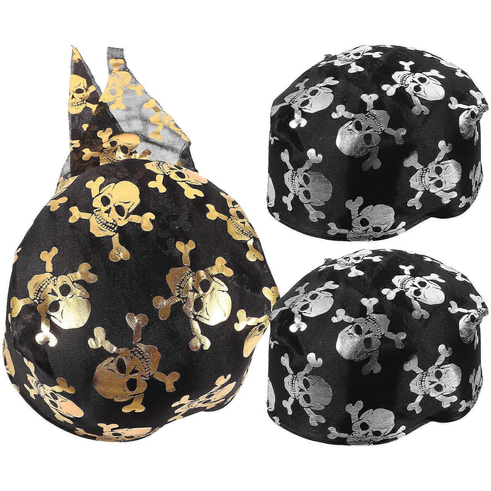 Pirate Hats Skull Cap Bandana Hat for Wearing 3Pcs Halloween Party Supplies