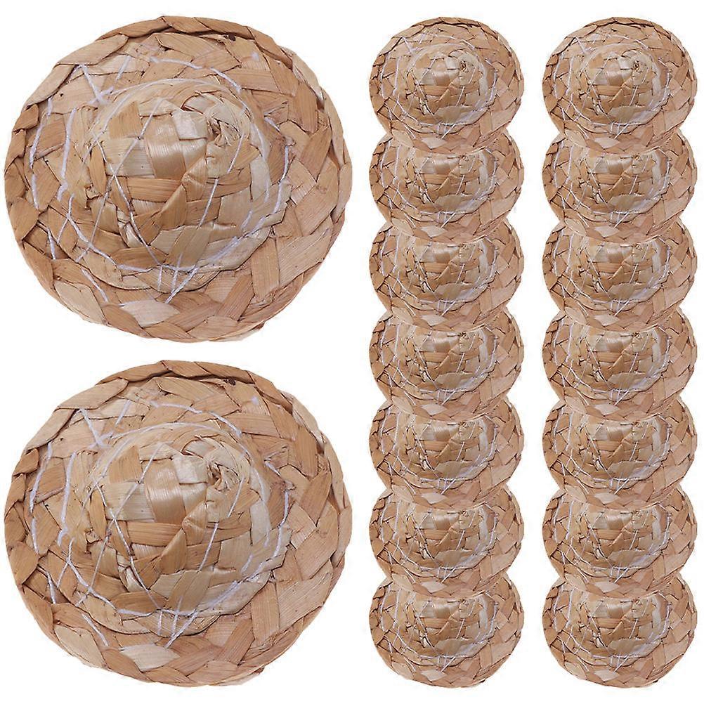 Light Yellow Woven Straw Hats for Photo Props and Doll Accessories 16 Pieces Small Size