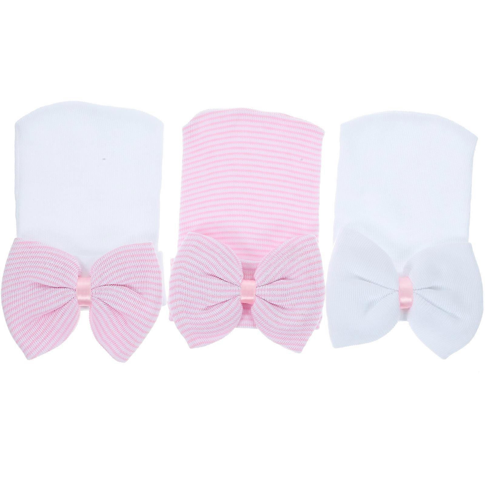 Newborn Hats Baby Hat Caps with Bows for Infant Wear 3Pcs Assorted Color