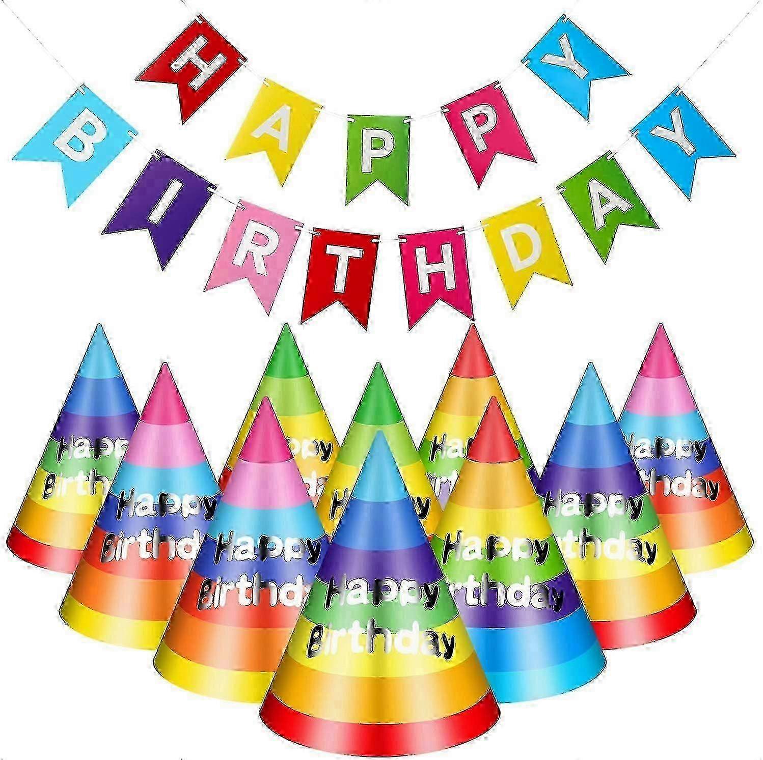 Rainbow Birthday Party Hats - Pack of 20 Colourful Cone Hats