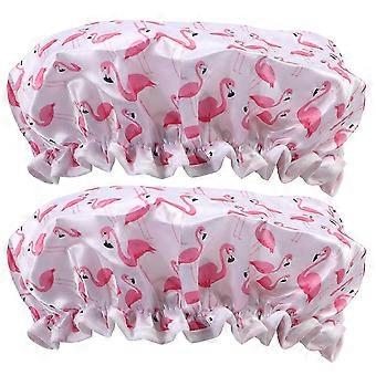 Waterproof Bath Caps Flamingo Design Shower Hats for Women Daily Use 27x27cm Peva Material 2Pcs