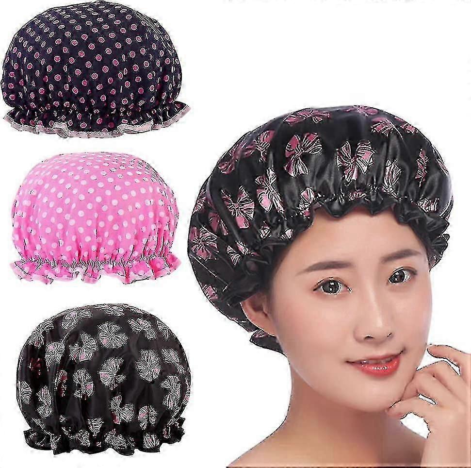 Waterproof Shower Caps Double Layer Bath Caps Elastic Shower Hat (3 Pack(size For Adults)) Gift