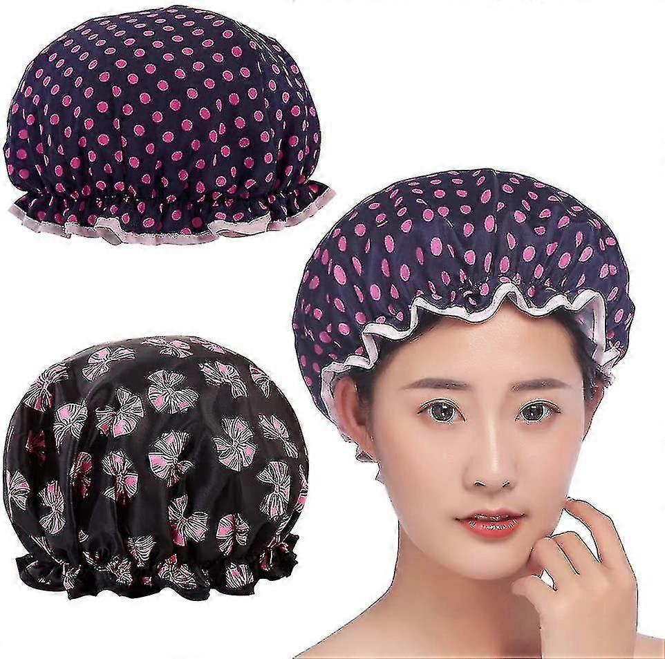 Waterproof Shower Caps Double Layer Bath Caps Shower Hat For Girls And Women (2