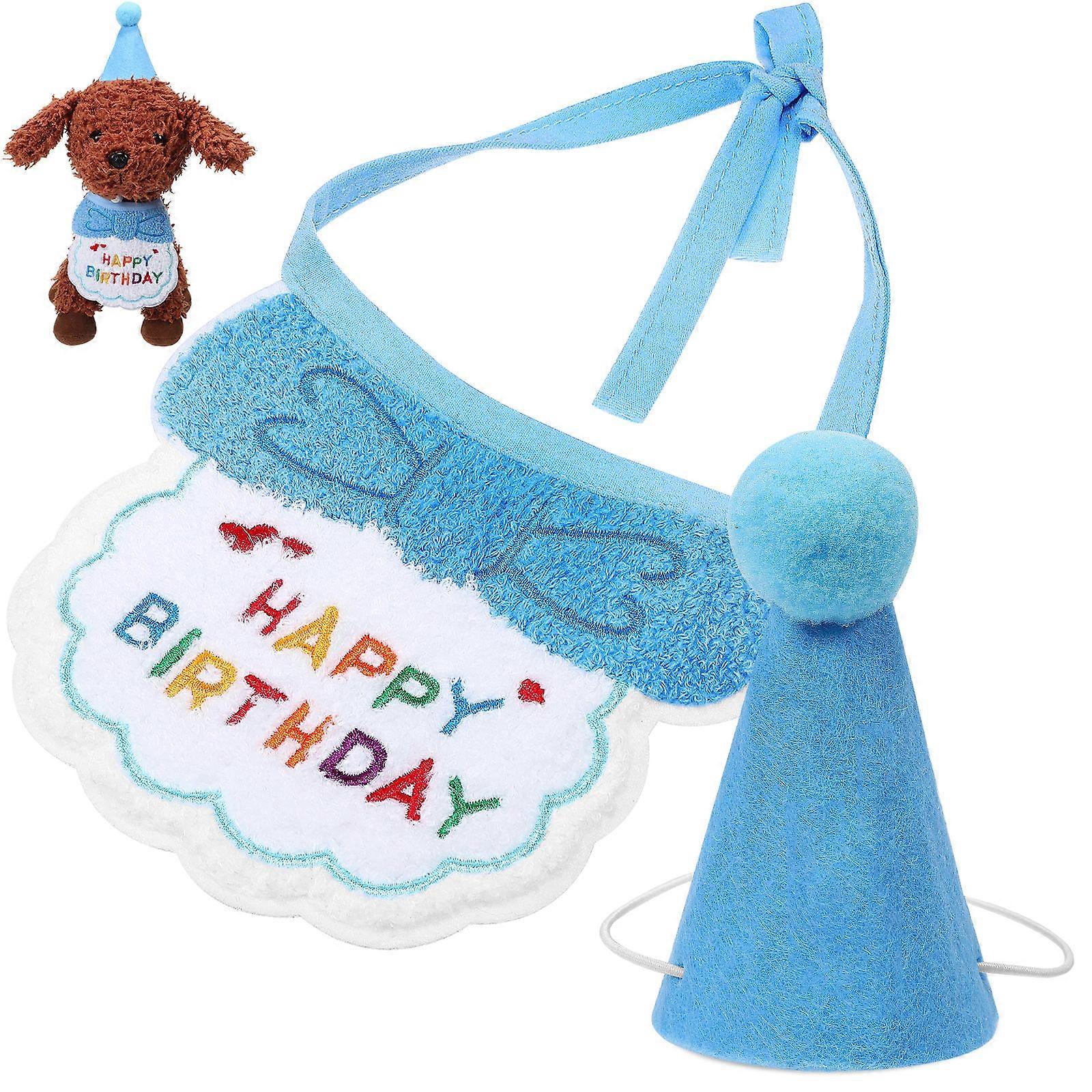 Dog Birthday Hats Pet Birthday Outfit Cat Birthday Bib Pet Birthday Party Blue Adjustable 1 Set