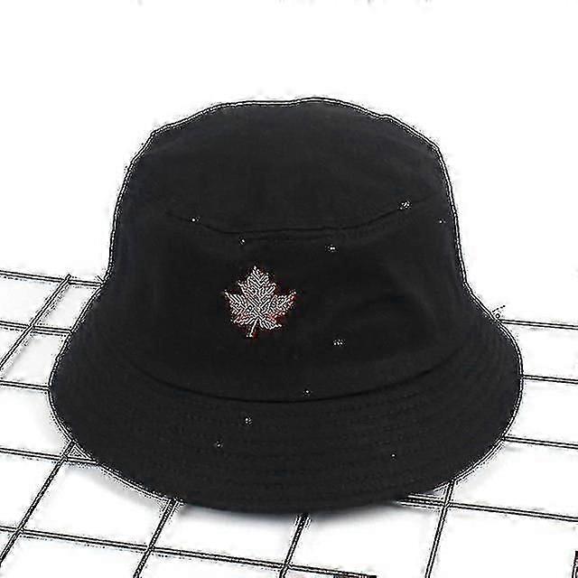 Hats Cotton Embroidery Fisherman Hat Foldable Sun Cap Size: 56-58cm Black Leaves