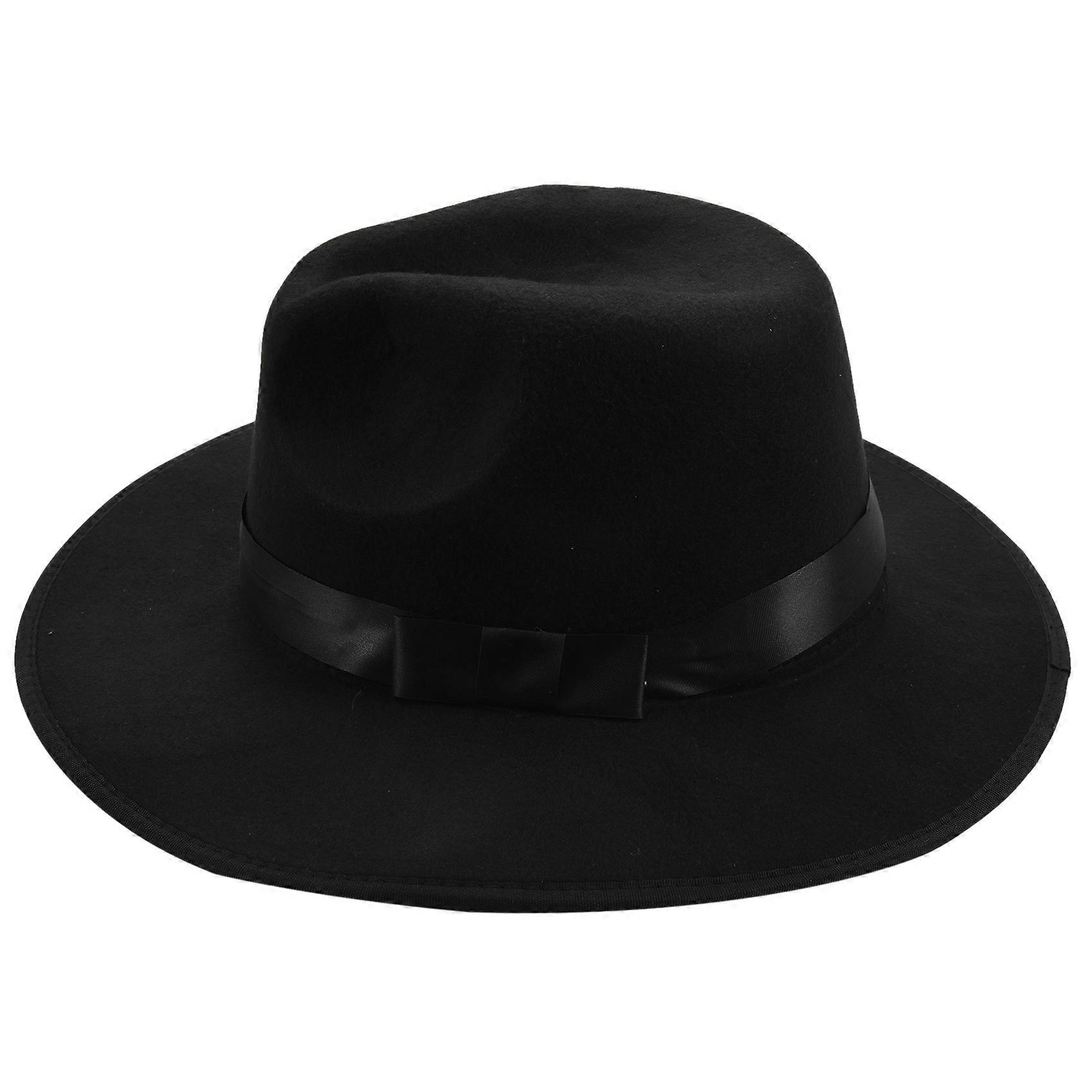 Unisex Hats Caps Fedora Straight Wide Brim Hard Felt Black