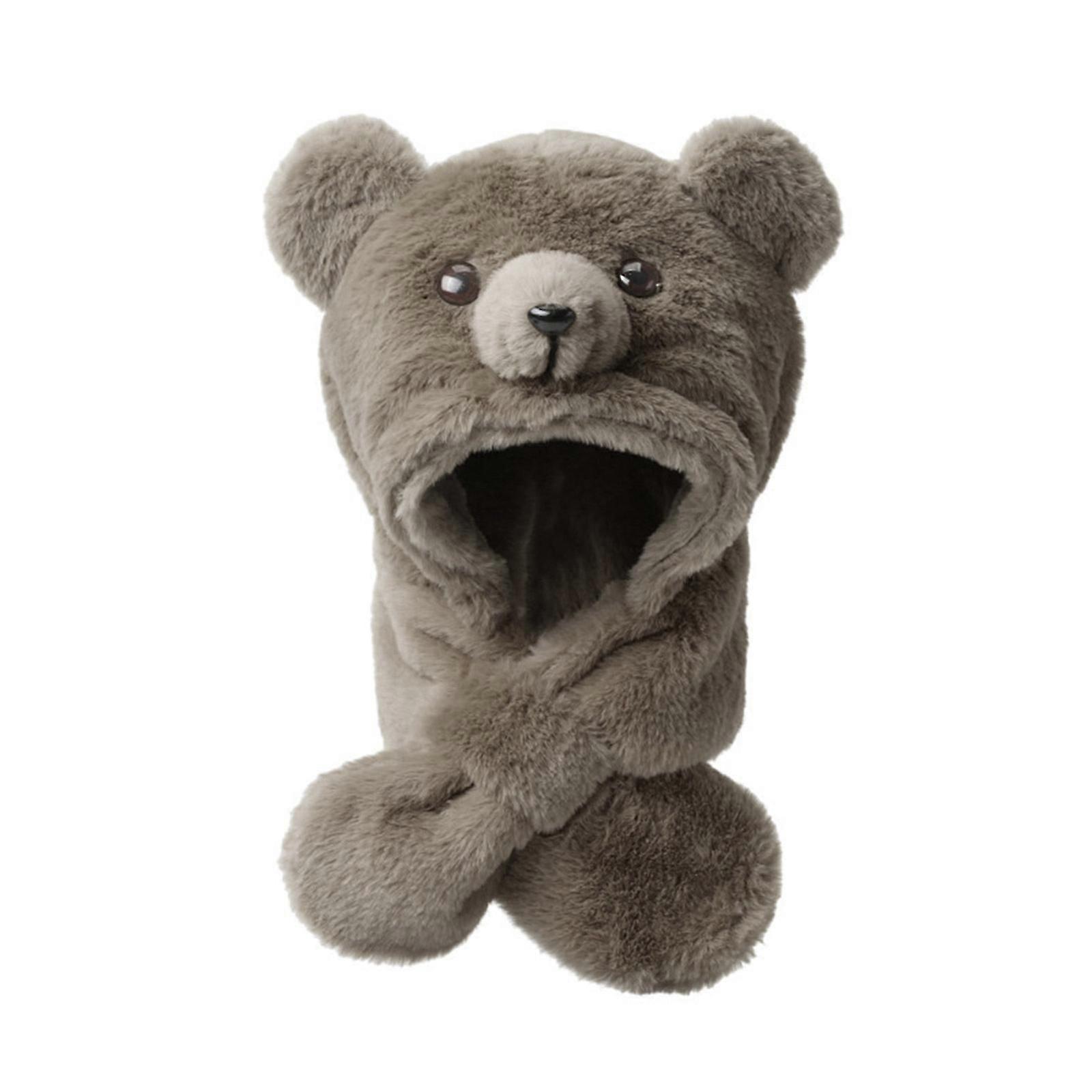 Toddler Plush Bear Winter Hat With Integrated Scarf Comfortable Unisex Child Warm Bear Hoodie Scarf Excellent Accessory White