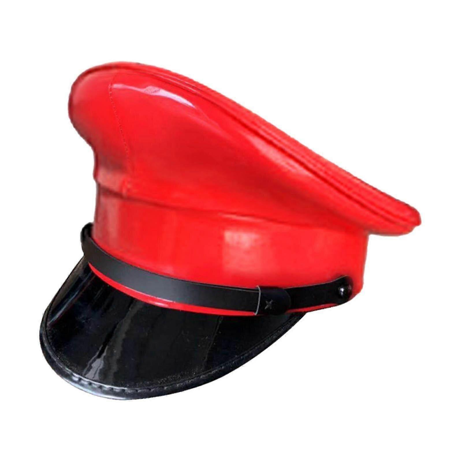 Captain Hat German Style Officer Hat Costume Props Faux Leather Army Hat Guard Hat For Nightclub Performance Halloween Unisex