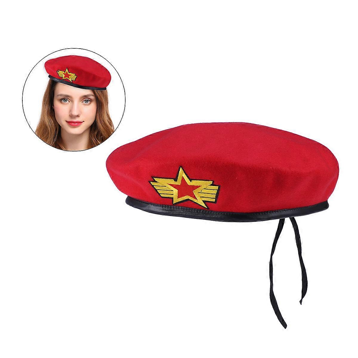 Red Yellow Star Beret Simple Elegant Design Sailor Hat For Adults Woolen 1Set